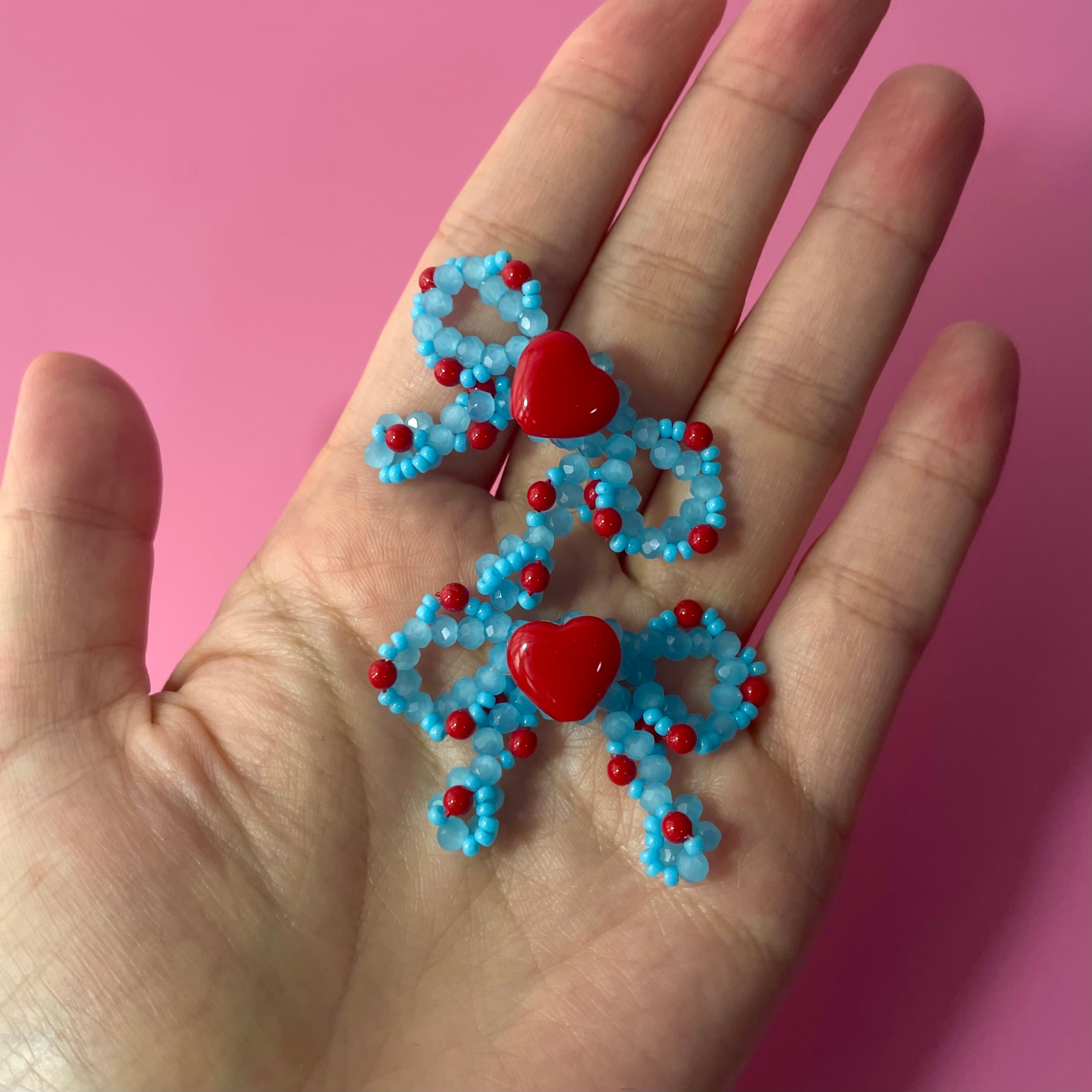 miniりぼん(水色×赤ドット×赤ハート)
